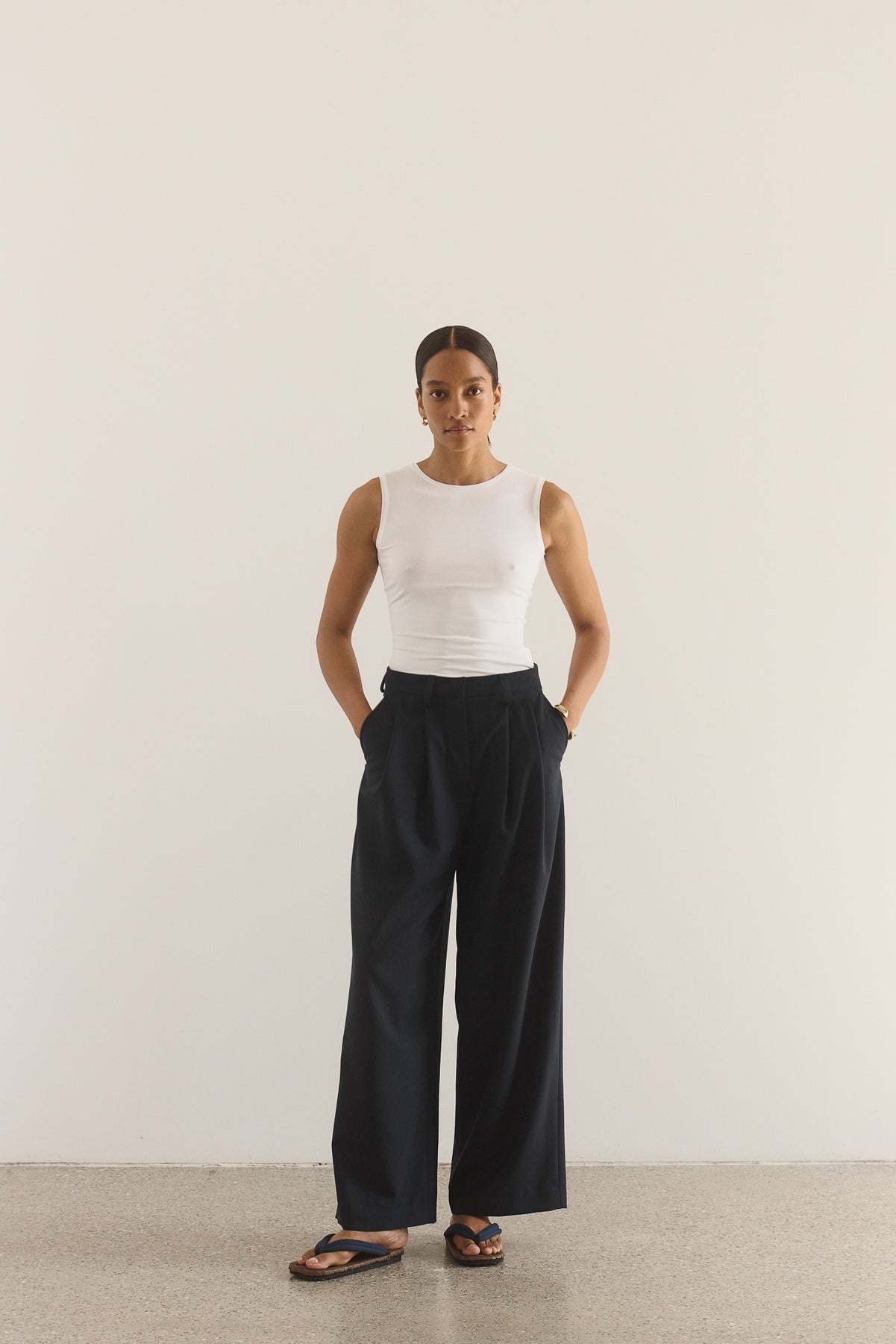 These wide-leg trousers are made from 100% premium Italian merino wool. The mid-rise waist is fastened with two trouser hooks, a metal riri zip and a concealed button. The leg is wide, drapes smoothly and includes two pleats to increase volume to the silhouette. Useful features comprise two side pockets, one back welt pocket and six belt loops.